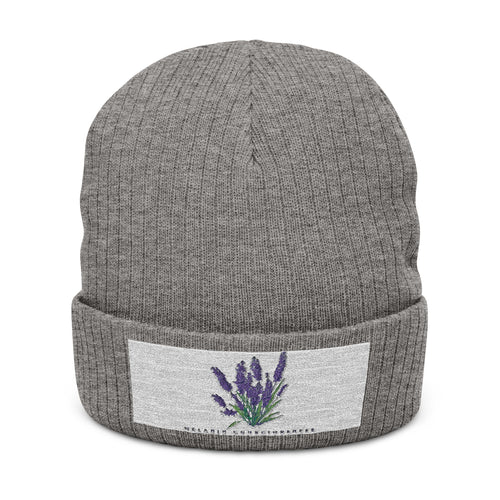 Lavender Embroidered Ribbed Beanie